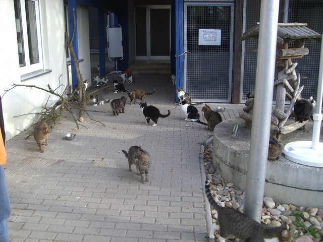 Dieses Heim ist mehr als ein Ort der Unterbringung – es ist eine Gemeinschaft, die fühlt und handelt, selbst wenn es manchmal nur die kleinen Dinge sind, wie wir unseren Tieren das Leben und die Zeit bei uns schöner machen können. Auch der Aufenthaltsraum, seit eh und je ein Lieblingsplatz der frei laufenden Hofkatzen, wurde von menschlicher Seite geräumt und als Katzendomizil gestaltet.