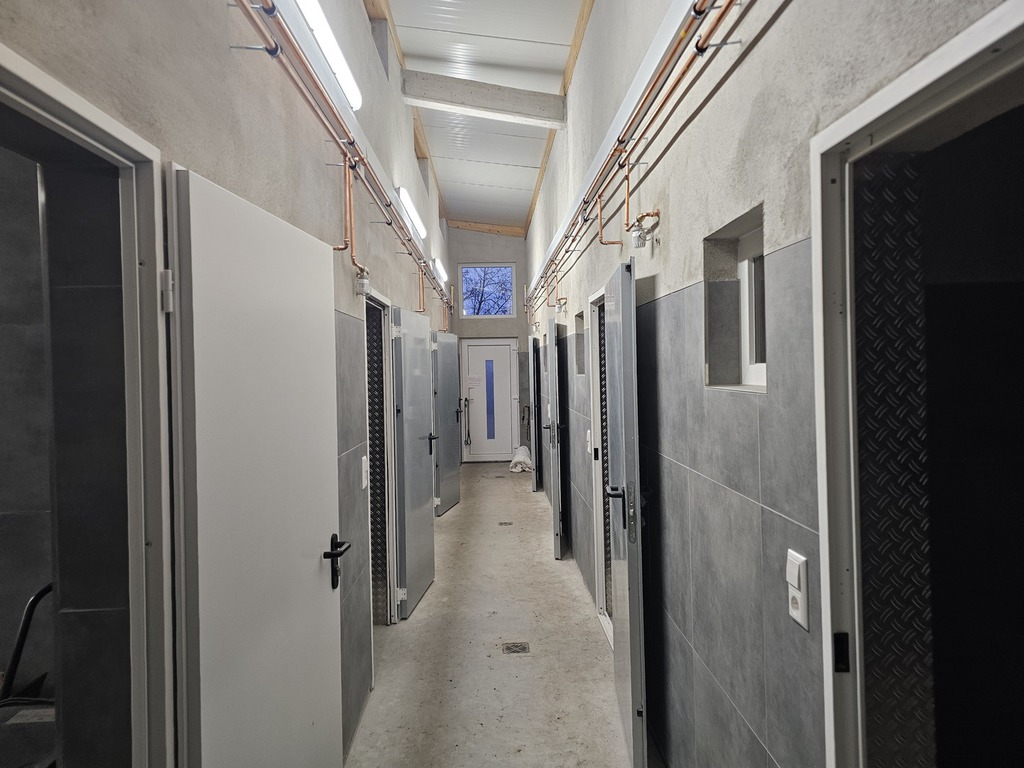 In den letzten Wochen wurden bei unserer Erweiterung der Hundeunterkünfte einige große Fortschritte im Innenausbau gemacht. Inzwischen sind alle Türen verbaut, die Lichter funktionieren und auch die Heizungen laufen bereits. Derzeit wird fleißig an den Zwingertüren gebaut, sowie an den Durchgängen zwischen den Innen- und Außenbereichen der einzelnen Unterkünfte. Im Anschluss steht der Belag für Boden auf dem Plan, sowie der Endverputz und die Farbe für die Wände.