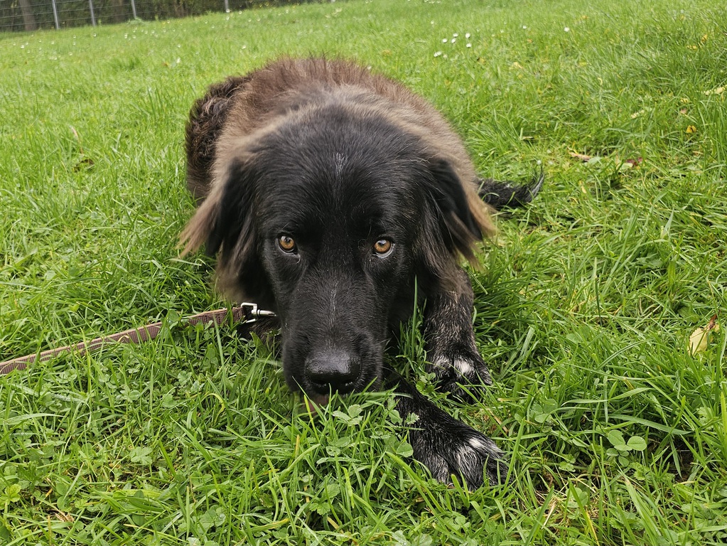 Ich bin ein großer Mischling und auf der Suche nach einem neuen Zuhause, in dem man mir genug Zeit und viel Liebe schenken kann. Ich bin ein großer Tollpatsch und bringe gerne viel Freude in den Alltag – aber ich brauche ein ruhiges Umfeld, deshalb wäre ein Zuhause ohne Kinder und Kleintiere für mich ideal. Ich habe das Hunde-Einmaleins schon ein bisschen drauf, aber es gibt noch viel zu lernen, besonders wenn es um andere Hunde geht. Menschen mit Hundeerfahrung wären perfekt für mich, denn sie können mir helfen, meine sozialen Fähigkeiten zu verbessern.
