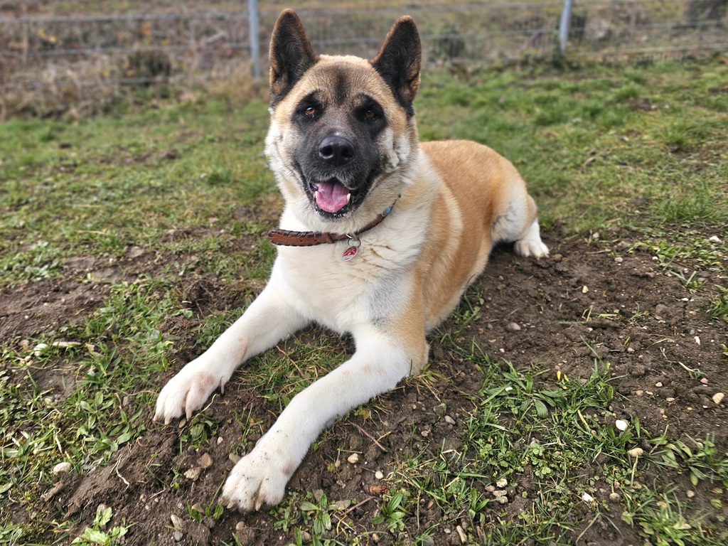Ich bin eine freundliche Akita-Dame, geboren im Jahr 2019, und suche nun ein neues Zuhause.