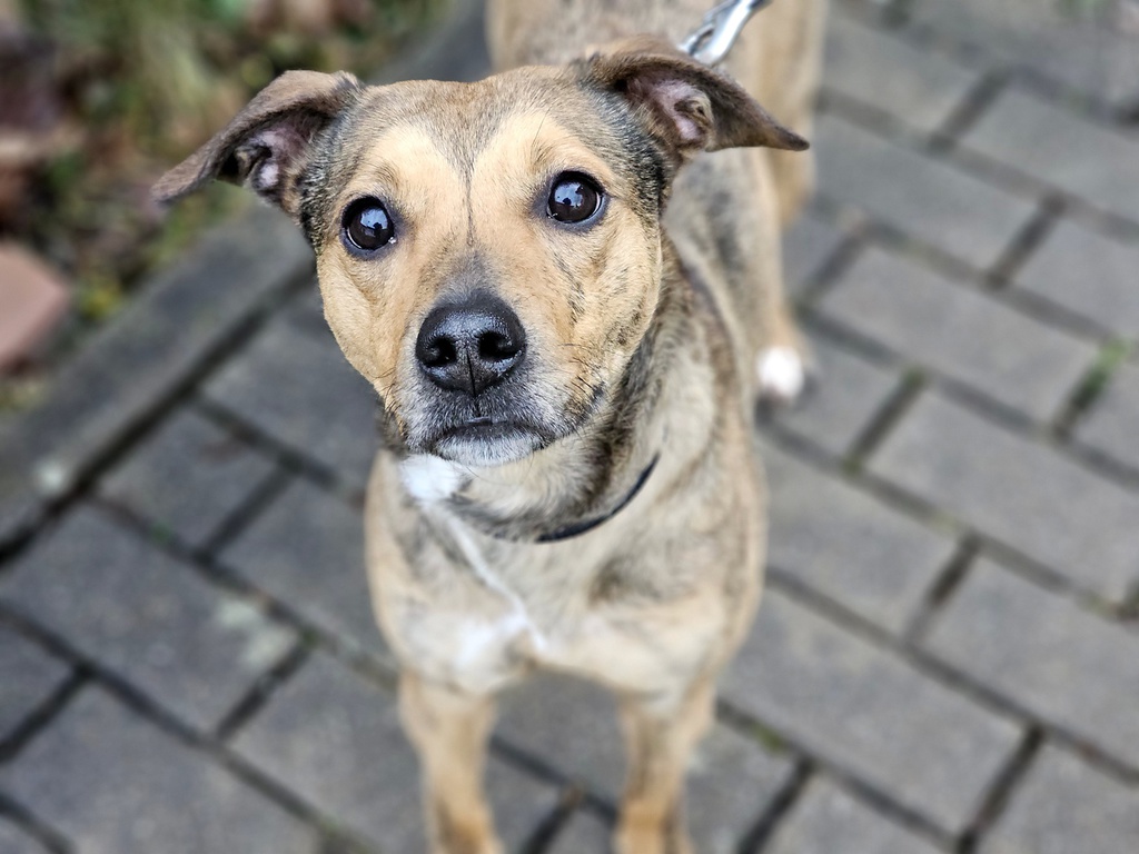 Ich bin eine verschmuste und grundsätzlich freundliche Hündin, die sich sehr nach Nähe und einem festen Menschen an ihrer Seite sehnt. Wenn ich dich einmal ins Herz geschlossen habe, dann bin ich anhänglich, liebevoll und genieße jede Streicheleinheit. Allerdings bringe ich auch ein paar Besonderheiten mit: Ich habe einen starken Jagdtrieb, deshalb sollten in meinem neuen Zuhause keine anderen Tiere leben. Auch mit anderen Hunden komme ich nicht immer gut zurecht, daher wäre ein Platz als Einzelprinzessin genau das Richtige für mich.