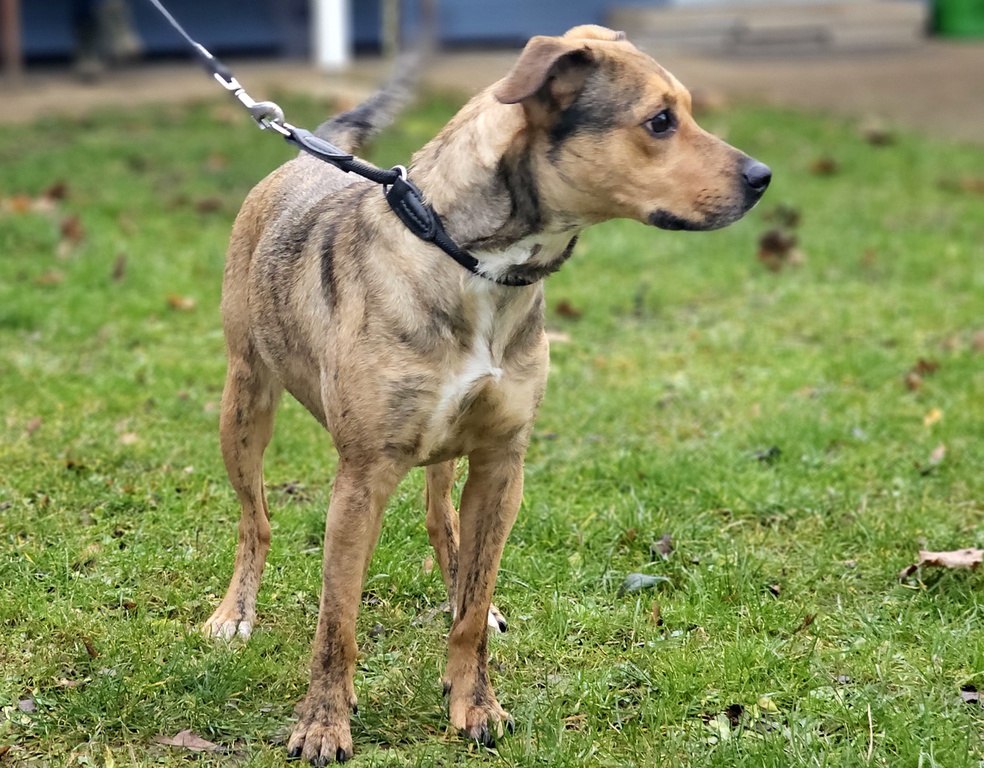 Bei fremden Menschen bin ich anfangs erstmal misstrauisch. Es kann sein, dass ich zu Beginn knurre, weil ich einfach einen Moment brauche, um Vertrauen zu fassen. Aber keine Sorge – mein Herz kann man ganz schnell mit einem Leckerli erwärmen. Wenn ich merke, dass du es gut mit mir meinst, werde ich sehr schnell zugänglich und kuschelig. Ich brauche Menschen, die mir liebevolle Führung geben und mir Sicherheit vermitteln. Dann kann ich richtig aufblühen, denn ich bin ziemlich schlau und lernfreudig. Bisher habe ich noch nicht viele Grundkommandos oder Tricks gelernt, aber die Menschen hier sagen ich lerne total schnell und bin super motiviert. Hundesport oder gemeinsames Training würden mir bestimmt viel Spaß machen! Kinder sollten in meinem neuen Zuhause schon älter sein, am besten mindestens im Teenageralter, damit sie meine Bedürfnisse verstehen können. Ich bin am 11.11.2022 geboren und stehe noch am Anfang meines Lebens – bereit, mit meinen Menschen gemeinsam durchzustarten.