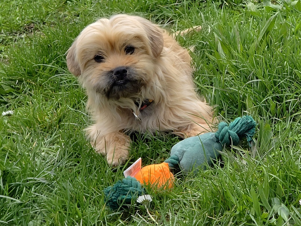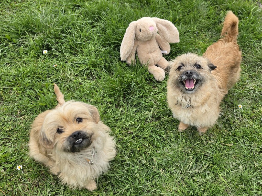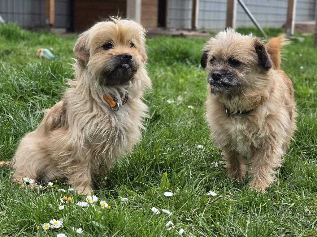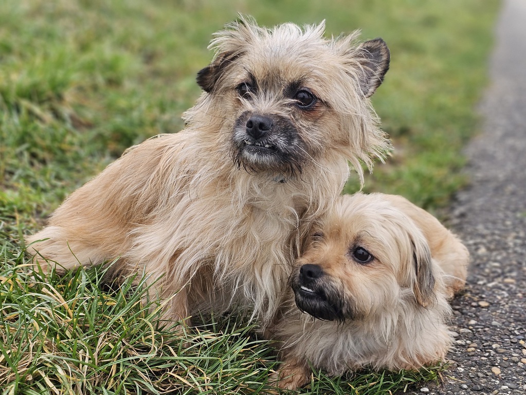 Ach ja: Wir beide haben einen leichten Überbiss, der uns aber überhaupt nicht einschränkt – wir sind trotzdem ganz normale, fröhliche Hundemädchen. Vielleicht bist du ja genau unser
