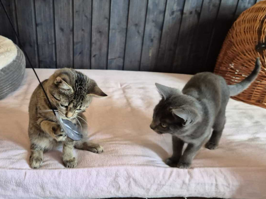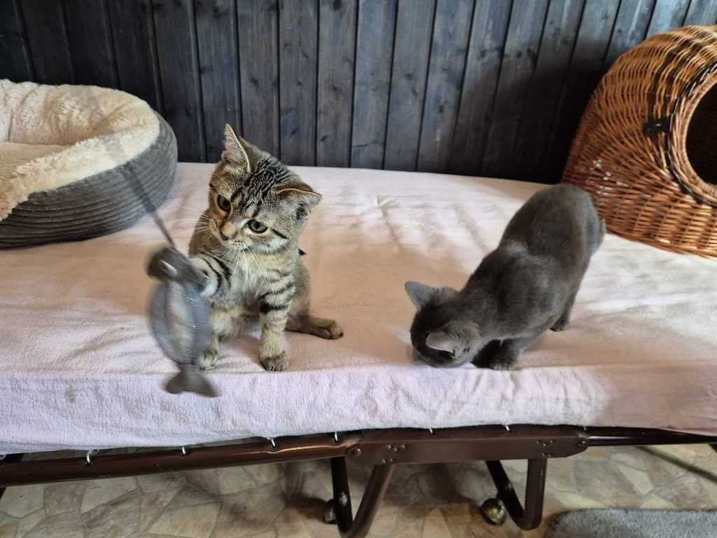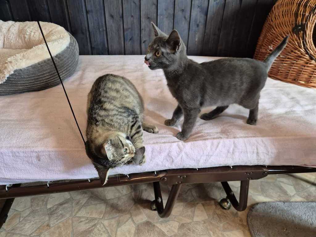 Hallo! Wir sind Arthur und Oskar, zwei kleine Kater, die gemeinam auf der Suche nach einem neuen Zuhause sind – vielleicht ja sogar bei euch? Wir sind Mitte Juli geboren, also noch jung und voller Energie. Unsere Lieblingsbeschäftigung? Spielen! Egal ob mit Bällen, kleinen Stoffmäusen oder Federn – wenn es sich bewegt, sind wir dabei. Nach einer Spielrunde kuscheln wir uns aber auch gerne zusammen und entspannen uns auf eurem Schoß. Wir zutraulich und genießen es, bei unseren Menschen zu sein, auch wenn Ihn anfangs sicher etwas Geduld braucht bis ihr das bemerkt.. in neue Situationen und fremde Menschen müssen wir uns nämlich erstmal eingewöhnen. Ein Zuhause in reiner Wohnungshaltung mit einem vernetzten Balkon wäre perfekt für uns. Auch ein Zuhause mit Kindern, die mit uns behutsam umgehen und Verständnis für kleine Fellnasen haben, können wir uns sehr gut vorstellen! Wir wünschen uns ein Plätzchen, an dem wir gemeinsam aufwachsen und viel Liebe bekommen können. Wenn ihr bereit seid, uns diese Chance zu geben, würden wir uns freuen, euch bald kennenzulernen.