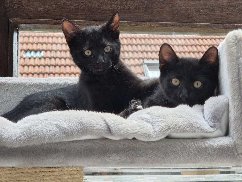 Wir verstehen uns super mit anderen Katzen und finden auch nette Hunde total okay. Hauptsache, du bist nett, hast Futter, Kuscheldecken – und ein bisschen Humor, denn mit uns wird’s nie langweilig!