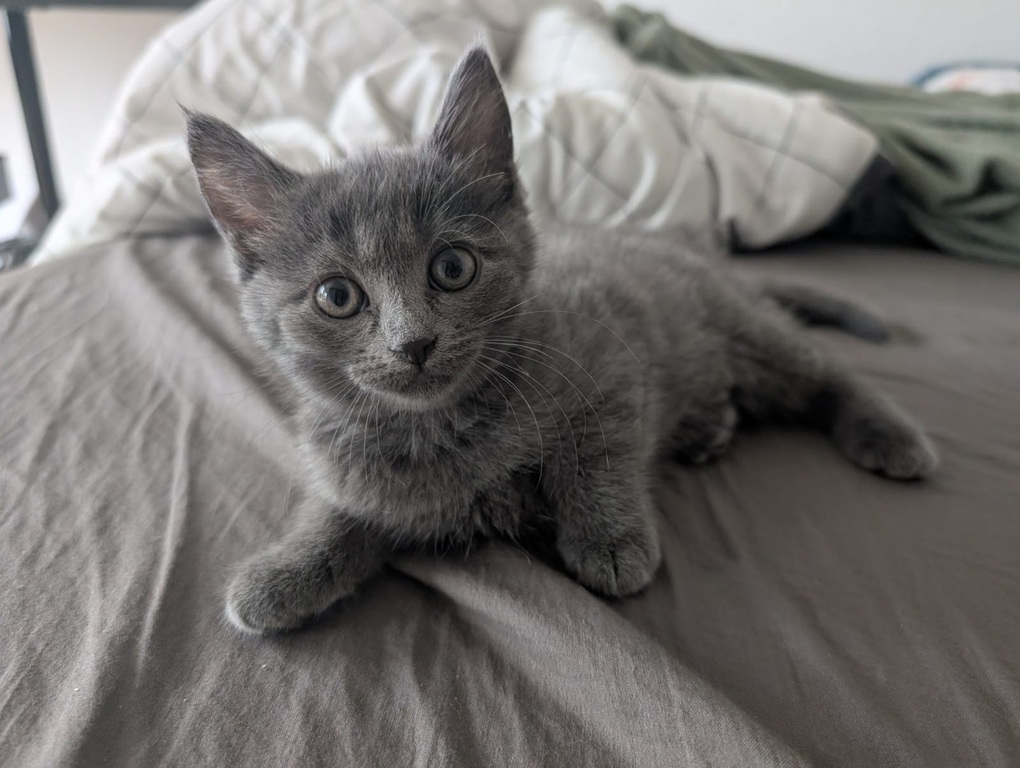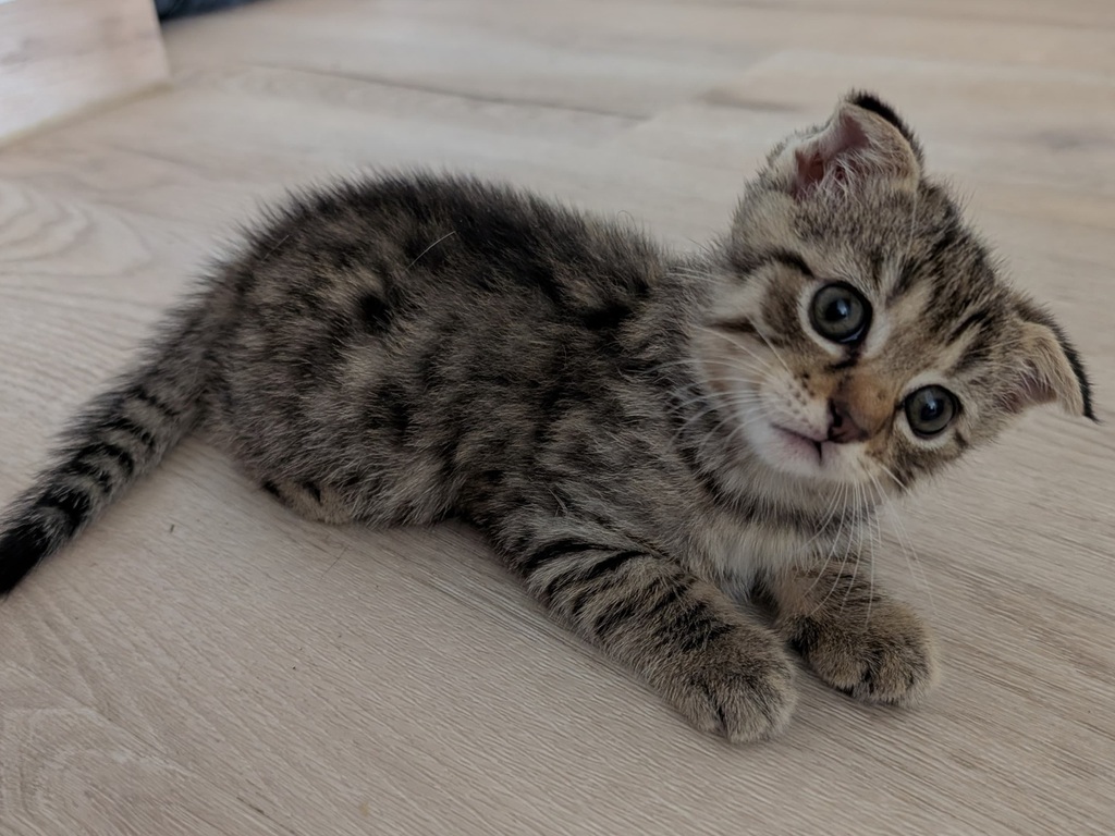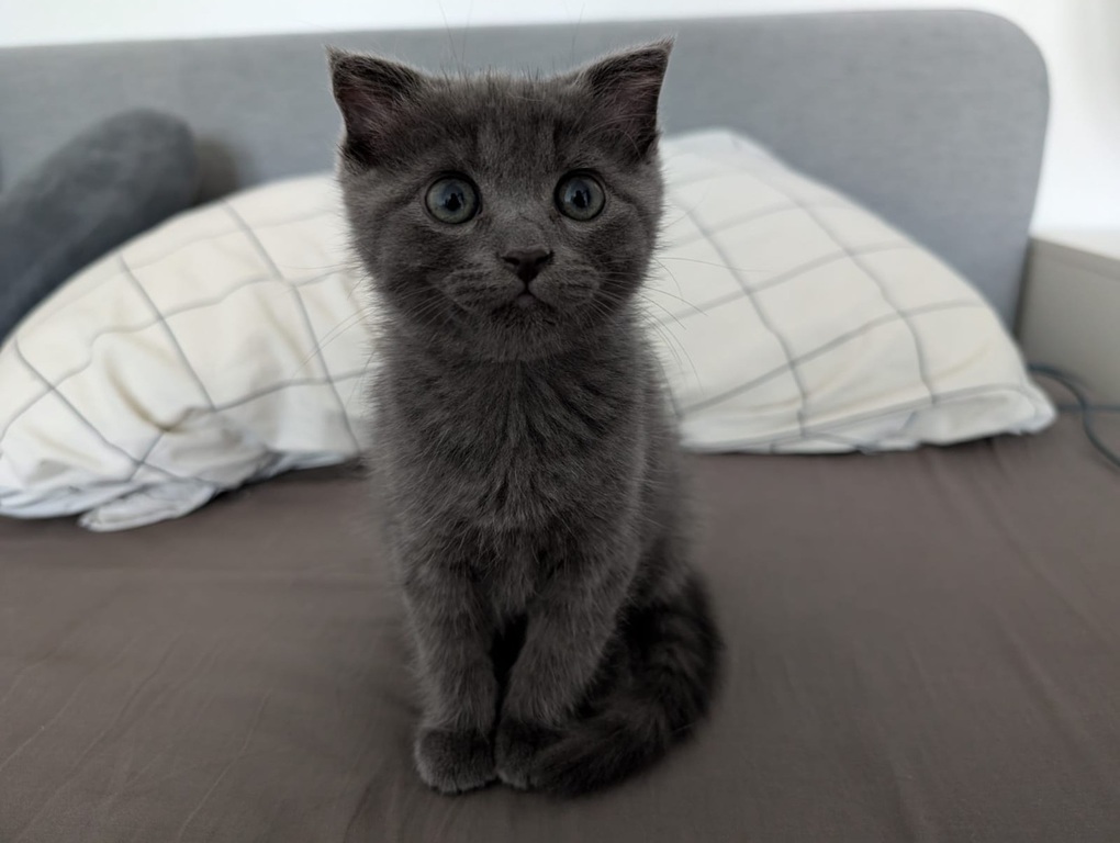 Hallo, wir sind Lulu (getigert mit Faltohren), Iggy (grau mit Faltohren), Ivy (grau mit Stehohren) und Mousse (getigert mit Stehohren). Wir sind vier kleine Wirbelwinde – kitten-typisch neugierig, verspielt und voller Energie. Jeder Tag ist für uns ein neues Abenteuer, und wir haben eine Menge Quatsch im Kopf! Ob mit Bällchen, Kartons oder einfach miteinander – Langeweile gibt es bei uns nicht.