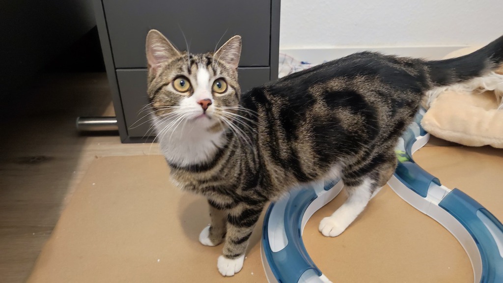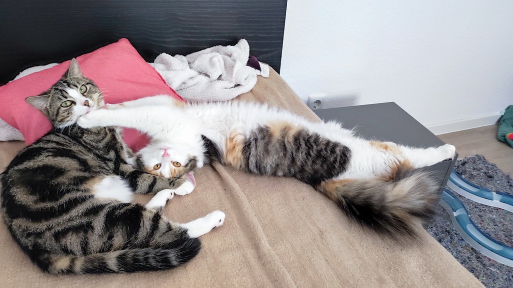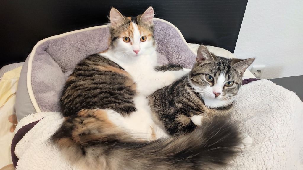 Wir sind Lieschen und Lotti, zwei Katzen die gemeinsam auf einer Pflegestelle groß wurden und jetzt in ein schönes Zuhause ziehen möchten. Wir sind altersgemäß sehr verspielt und jagen allem hinterher, was sich bewegt. Mit Leckerlis kann man uns auch wunderbar bestechen, auf Kommandos zu hören. Wir brauchen Beschäftigung und viel Zuneigung. Besonders Lieschen liebt es ausgiebig auf dem Schoß gekuschelt und gebürstet zu werden, möchte immer dabei sein und teilt sich gerne mit. Lotti ist ruhiger und ist gerne in der Nähe, ohne aufdringlich zu sein.