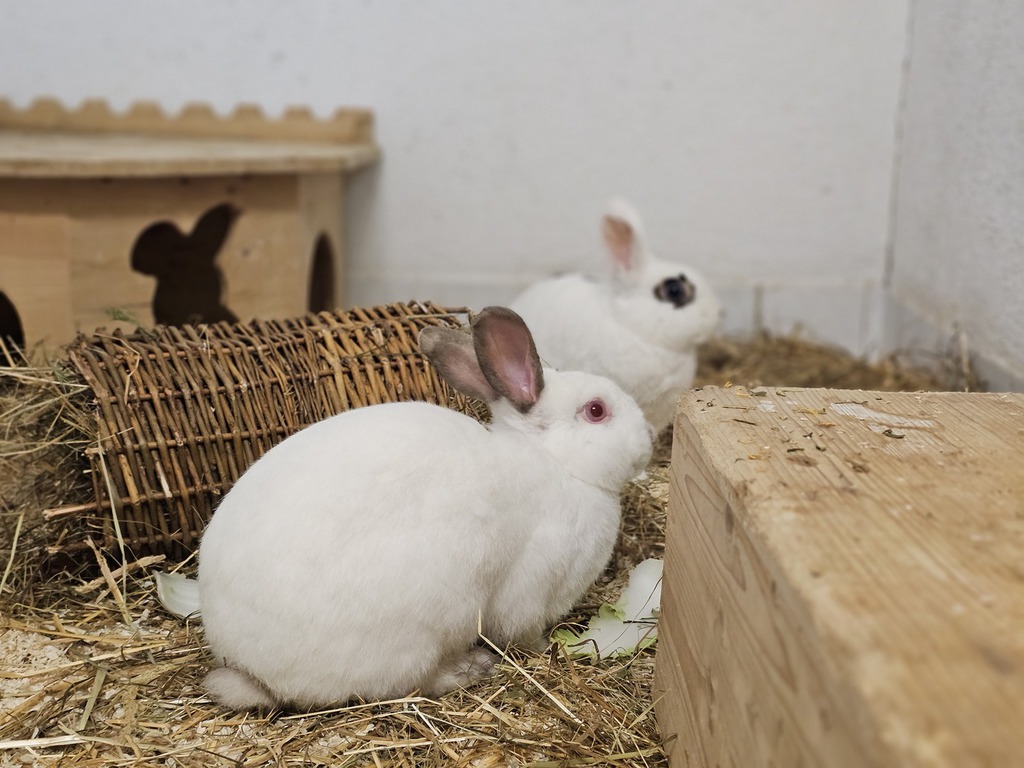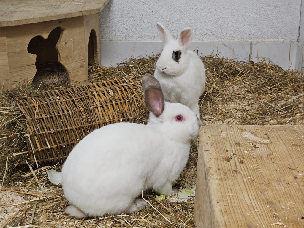 Hallo, wir sind Coco und Icy! Wir sind zwei aufgeweckte, neugierige und freundliche Kaninchen auf der Suche nach einem liebevollen neuen Zuhause. Wir verstehen uns prima, kuscheln gerne miteinander und erkunden gemeinsam unsere Umgebung. Dabei sind wir immer neugierig und freuen uns über alles Neue, was es zu entdecken gibt!