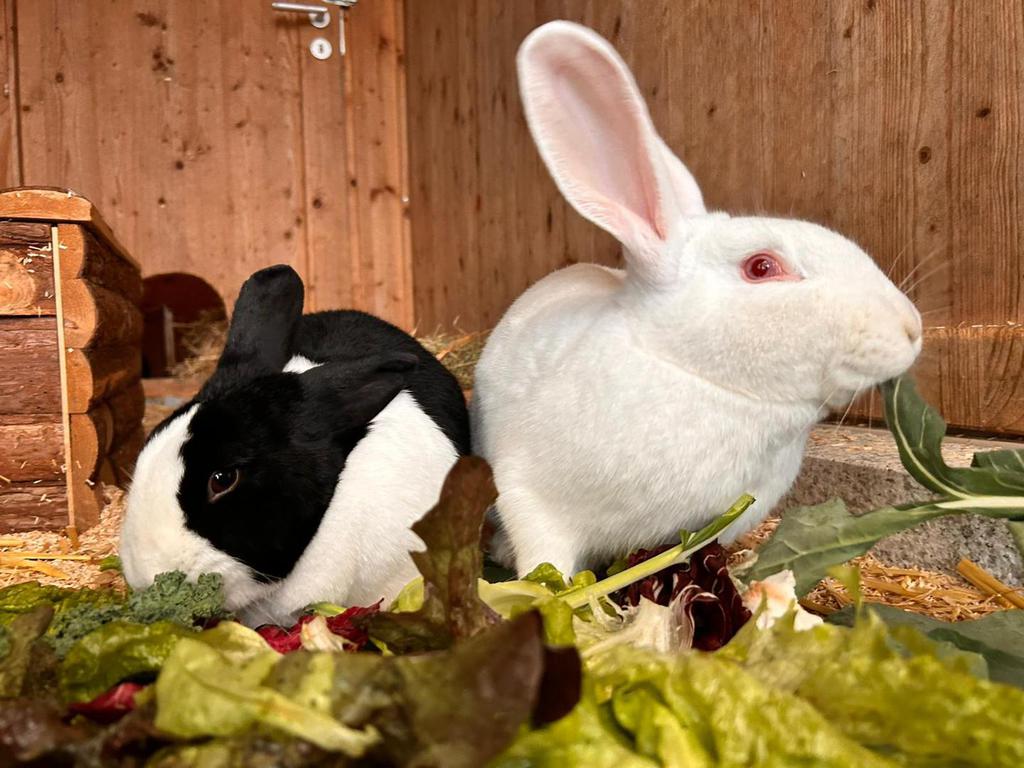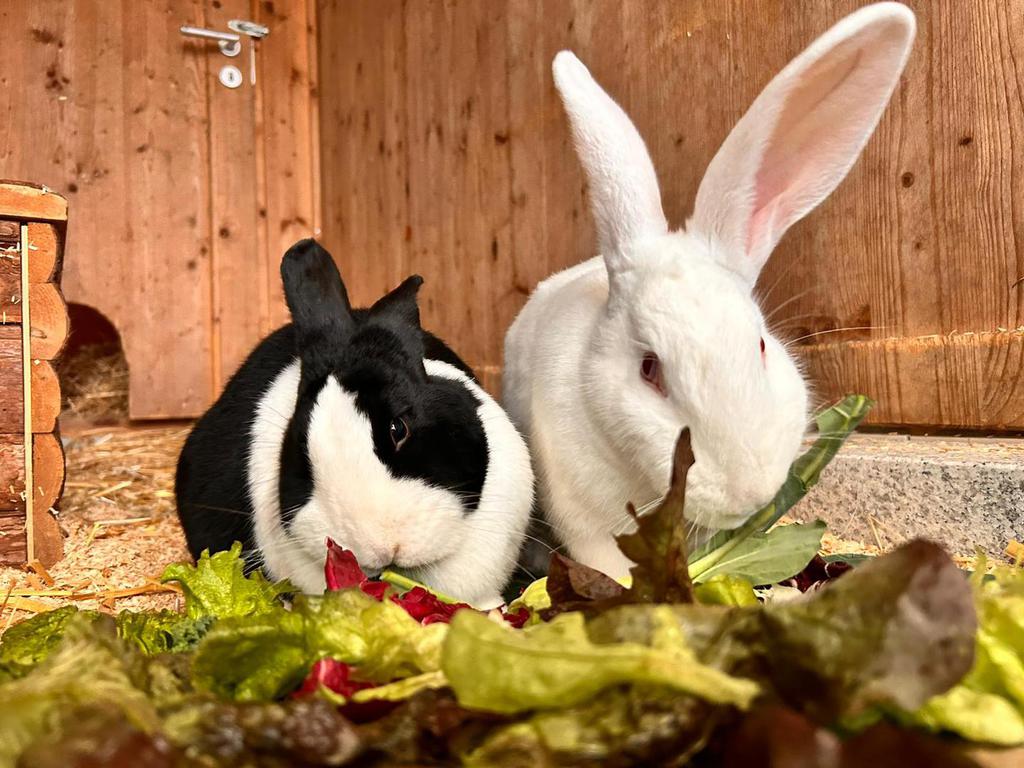 Hallo, wir sind Leo und Cleo, ein tolles Kaninchen-Pärchen mit ganz viel Liebe zu geben. Wir sind relativ große Kaninchen, deswegen wünschen wir uns ein Zuhause, in dem genug Platz für unseren langen Sprünge und Haken ist. Ein schönes, großes Gehege – drinnen oder draußen – wäre genau das Richtige für uns, damit wir nach Herzenslust hoppeln und die Welt erkunden können.