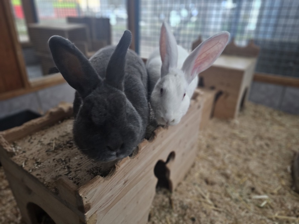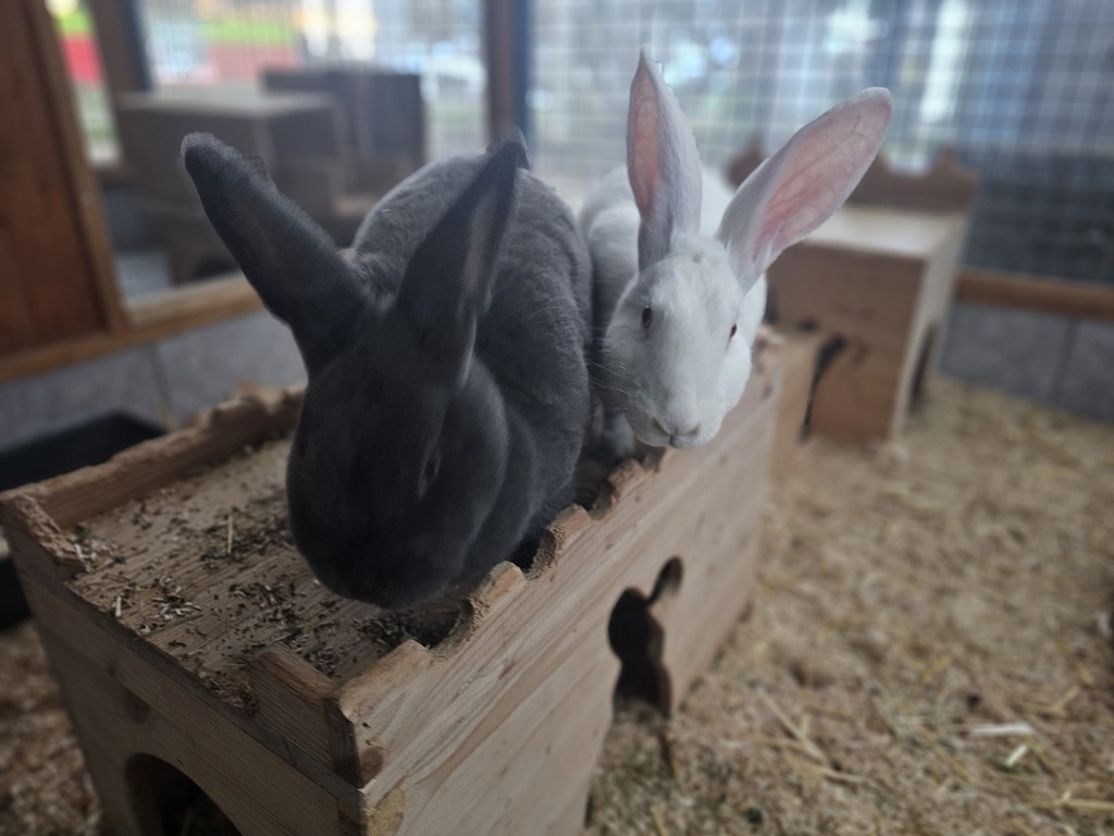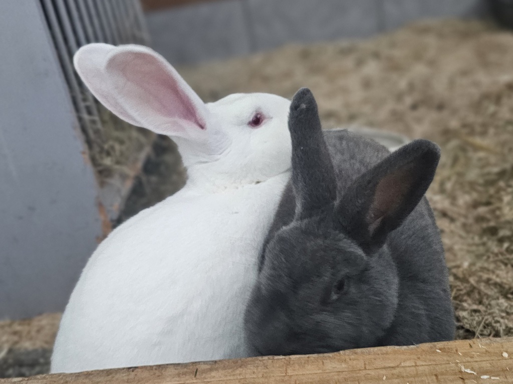 Hallo, wir sind Leo und Lisel, ein tolles Kaninchen-Pärchen mit ganz viel Liebe zu geben. Wir sind relativ große Kaninchen, deswegen wünschen wir uns ein Zuhause, in dem genug Platz für unseren langen Sprünge und Haken ist. Ein schönes, großes Gehege – drinnen oder draußen – wäre genau das Richtige für uns, damit wir nach Herzenslust hoppeln und die Welt erkunden können.