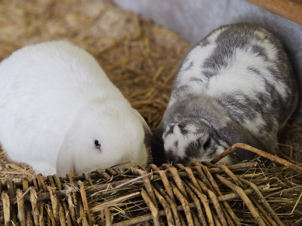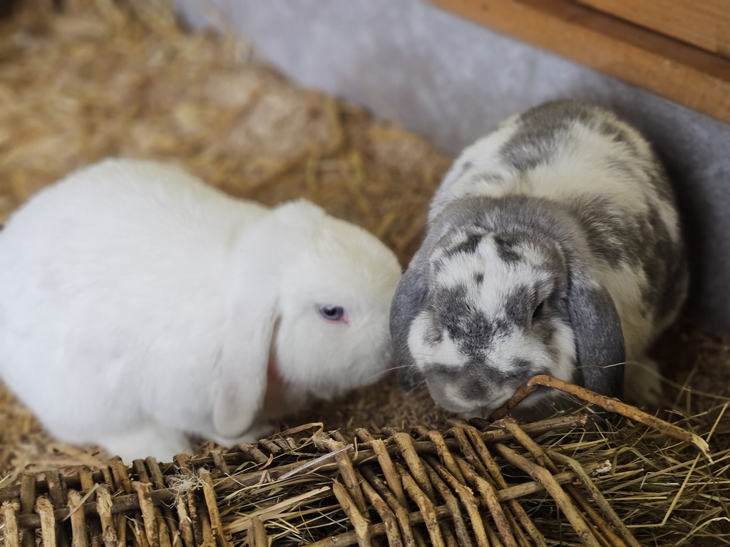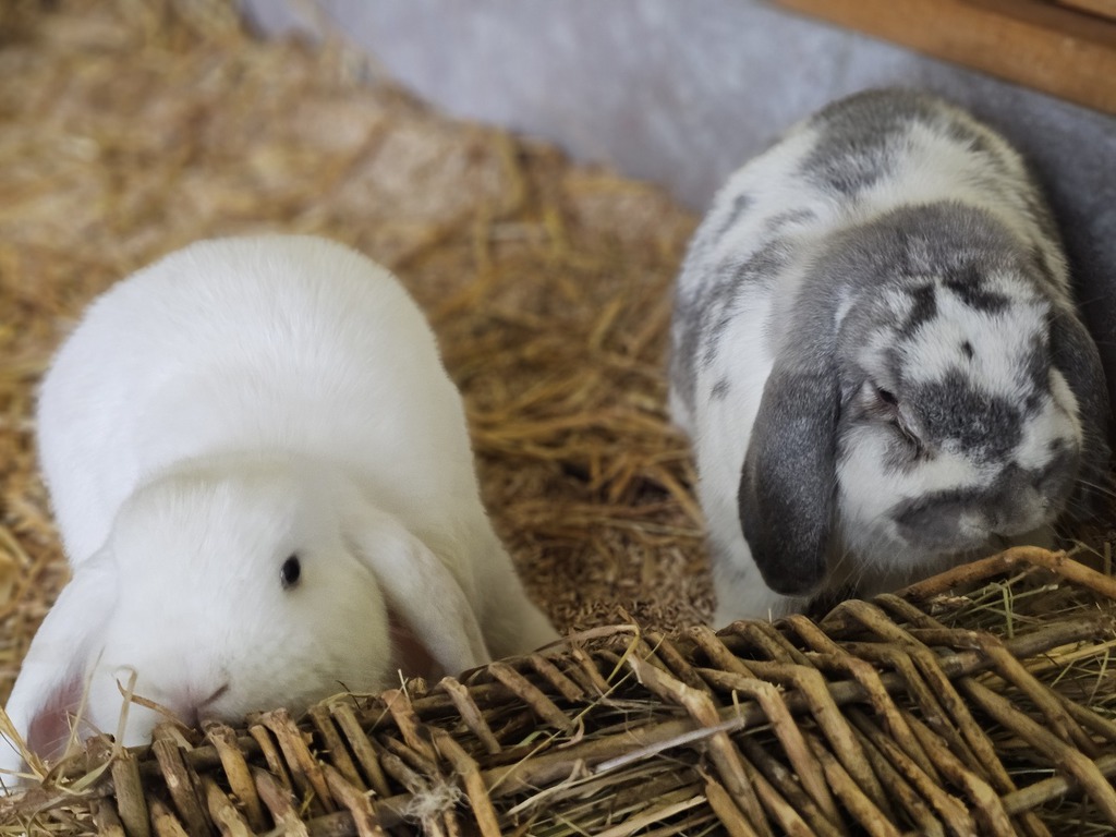 Wir sind zwei neugierige Widderkaninchen, die gerade auf der Suche nach einem neuen, liebevollen Zuhause sind. Anfangs sind wir vielleicht ein kleines bisschen schüchtern, aber wenn man uns etwas Zeit gibt, zeigen wir schnell, wie freundlich und aufgeschlossen wir wirklich sind.